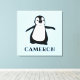 Anpassa denna inslagna canvas med barnets namn, med min svart-vita söta pingvinsillustration. Perfekt för en modern barnkammare.