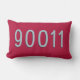 Stor fet bokstavsstorlek postnummer i heatherblå på kardinalröd kudde. Personlig dekorativ kudde som symboliserar ditt hem och din plats i världen. Lämna som det är om du bor i Los Angeles, CA och ditt postnummer är 90011 eller anpassa det enkelt med ditt eget postnummer eller något annat betydelsefullt anpassat nummer eller kort anpassad text. Du kan också använda det som en rolig personlig husvärmegåva.