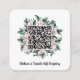 Din unika QR-kod och en rad med personlig text visas på dessa fyrkantiga inneslutningskort med magnoliablomma ram.