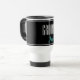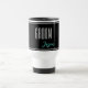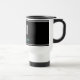 Den här resemuggen för trippen visas i ett svartvitt stil med vit text och har ett exempel på namn. Anpassa det här objektet och ändra exemplet namn till ditt, du kan också ändra färg om du vill.