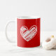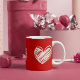 Fira kärlek och vänskap med denna anpassade röda hjärtamugg, med ett handritat vitt hjärta på en djärvt röd bakgrund och ett personligt namn i elegant skrivstil. Den minimalistiska designen gör den perfekt som brudtärnegåva, romantisk gest eller för vardaglig värme.