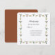Unikt RSVP-kort med en handmålad kolibri-kantdesign med Allens och Rufous kolibrier och blomsterdekorationer. Teckensnittet och storleken kan ändras med hjälp av funktionen "redigera design". Baksidan av kortet har en matchande enfärgad terrakotta-färg.