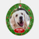 Söt december julgransprydnad med utrymme att anpassa eller anpassa med namn du väljer i en elegant typsnittskrift, ett personligt foto av din hund eller katt och år datum du väljer. Med en snygg säsongsbetonad grön julblad och röda bär mönsterbakgrund som dekoration. Unika minnen som din fur kids' mor- och farföräldrar, andra familjemedlemmar eller dina vänner kommer att älska!