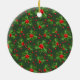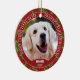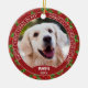 Anpassad söt valpfoto på grön järnek med röda bär julgransprydnad keramik
