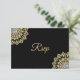 Eleganta, moderna men ändå traditionella svarta indiska RSVP bröllops svarskort. Bakgrundsfärgen kan ändras. Vacker guldbaserad och diamant Mandala blomdesign. Baksidan har falsk guld folie. Redigerbara mallar - lägg till din text. Kontakta formgivaren för andra variationer.