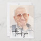 Framsidan på det här tackkortet för 90-årsdagen visar hedersgästens foto med orden "tack" i modern svart handskriven stil i overlay. En vit skärm hjälper till att få texten att sticka ut. Anpassa baksidan med ditt personliga meddelande i svart sans serif-teckensnitt och ditt namn i script på en beige bakgrund.