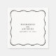 Lägg till en modern touch till ditt bröllop med denna svart-vita cocktailservett med en vågig ramkant, elegant handskrift och anpassningsbar serif-text för namn och datum. Perfekt för mottagningar, förövningar och förlovningsfester. Alla färger kan redigeras för att matcha ditt tema. Stilfull, personlig och enkel att anpassa – designad för att sticka ut.