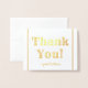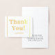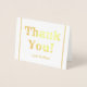Den här anpassade guld-folie-tack-du-hälsningskortdesignen innehåller meddelandet "Tack!" på framsidan, tillsammans med ett anpassade på insidan. Det skulle kunna användas för att visa uppskattning för någon som har deltagit i en bröllop, en begravning, ett studenten eller någon annan händelse.