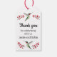 Vacker anpassningsbar "Tack för att du firar med oss" presentetikett med handmålad vattenfärg botaniska grenar och rubinstrupekolibrier.