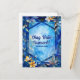 Skicka dina Hanukkah-hälsningar med en personlig touch med hjälp av detta anpassningsbara Hanukkah- vykort! Framsidan har en vacker blå akvarellbakgrund dekorerad med illustrerade blad och blommor i olika nyanser av blått, gult och vitt. Hälsningen ”Chag Urim Sameach!” (Glad ljusfest) visas elegant i vit text, med utrymme för anpassad text nedan, vilket gör varje kort unikt.