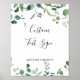 Denna anpassade text kalligrafi manus gröna lövverk skylt är perfekt för ett elegant bröllop eller brud shower. Designen har vattenfärg handritade eleganta botaniska eucalyptus grenar och blad, arrangerade i vackra buketter och geometriska mönster.