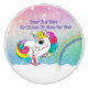 Anpassad text/ Vit Enhörning Regnbåge Glitter Palj Knopp