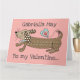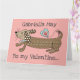En söt liten kötthund som springer glatt längs med en hjärtballong. Det perfekta kortet för Alla Hjärtans Dag.