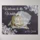Personlig Välkommen till bröllopet för Chalkboard-utseende med bleknad vit ros.