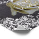Personlig välkomsthälsning till bröllopet med Chalkboard-utseende och bleknande vit ros.