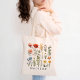 Vackert designad vildblommaväska med känslig botanisk illustration och anpassad namndetalj. Perfekt vardaglig medhavningsväska för shopping, skola eller ärenden. En genomtänkt personlig gåva till födelsedagar, mors dag, brudtärnor eller blomsterälskare som älskar estetisk, cottagecore-stil.