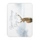 Lägg till ett personligt meddelande på denna snygga julmagnet med en hjort på en vinterbakgrund från skogen. Designad av Thisisnotme©