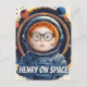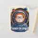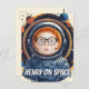 Underbart vykort med astronauttema för barn. Det finns ett cirkulärt ram som du kan fylla med ett eget foto och en egen text! Det här vykortet är underbart för att fira födelsedagar och skolevenemang för barn.