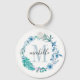 Anpassade Blommigt Monogram Blue Vår Nyckelring