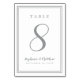 En mall för valfritt nummer, denna enkla, minimalistiska och eleganta bröllopsbordstavla har en modern design med en dubbel ramkant i Ultimate Gray på en skarp vit bakgrund. Chic design ger tidlös men modern förfining. Anpassa bröllopsbordets design med ditt namn, bröllopsdatum och bordnummer i trendig grå text och handskrift. Baksidan av kortet är en dubblett av framsidan. Anpassa enkelt och beställ en för varje bord med de individuella bordnumren.