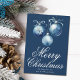 Den här chicen, som inte är ett God jul-fotokort, har ett blått kursivt skript för elegant bredvid ett teckning med söt vattenfärg av helgdag-dekorationer med en båge. Anpassa dessa vackra helgdagskort för vänner och familj med vitt skript.