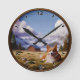 Anpassade Cute Corgi Scenia Background Rund Klocka