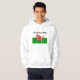 En hooded sweatshirt som ska anpassas med en söt Welsh Red Dragon på en grönt och vit bakgrund, och "Wales för alltid!" i svart skrift, från en handmålad vattenfärgsillustration av Judy Adamson.