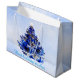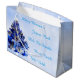Anpassade dekorerat blå julgran med god jul på olika språk