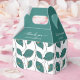 Provide your wedding guests with personalized wedding favors. These small wedding favor boxes contain teal wedding colors with a floral leaf design. Place on each guest table around a reception centerpiece. Coordinate with your fall floral arrangements. Unique wedding favors include candies, candles, flower seeds, Jordan almonds, and even trail mix. Wedding favour boxes make wonderful elegant fall wedding ideas for an autumn wedding.