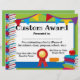 Anpassadet Kids-utbildningsbevis Brev storlek Använda på 8,5 x 11 tum ger studenter en färgstark belöning för ett väl utfört arbete i alla skolor och program. Anpassad design med staplar av bokar, buntbanderoll flaggor och rödribbonsäl. Underbar till använda för förskola, förk studenten, förskola, grundskola som pris för akademisk prestation inom matematik, vetenskap, läsning, perfekt, enastående närvaro, underbara insatser i idrottsgruppen under en idrottsman eller någon använda! Visa ert pride och er entusiasm över era studenter och era medarbetares ansträngningar med detta anpassade, intyg om personlig. Lägg till din egen online och beställ anpassningsbarna för certifikat som gjorts för ceremonin. Lämna namnteckning området tomt om du vill lägga till en namnteckning senare, eller ange namn och titel och lägg fortfarande till namnteckning ovan. Honoree's namn kan skrivas in eller så kan den tomma raden lämnas för att lägga till handskriven eller utskriven namn senare.