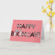 Ett roligt födelsedagkort för en cyklist eller en cyklaentusiast. GRATTIS PÅ FÖDELSEDAGEN i en svart typestyle. Brev stylizeds med den olika cykeln "tillbehör" (exponeringsglas, hjälm, pumpar, hornen, utrustar, vattenflaskan, en låsa och en kedja). Jag har bakgrundsfärguppsättningen till rosor, men du kan ändra det till någon färg som du önskar att skräddarsy den. Unikt, färgrikt och oh så sure att göra någon att skrocka.
