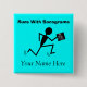 Det roliga Sonographer namnemblem klämmer fast, anpassadet. Stickman spring med sonogram, "springor med Sonogram". Tillfoga namn till grunden ELLER TA BORT ATT UTTRYCKA.