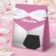 Idrottsdesign med en nära bild av fotboll, helt anpassade med din egen namn eller text. Perfekt för fotbollsspelaren eller fotbollsspelaren fläkt som en favoritbox för deras fotbollsfödelsedag med ett Tack på väskan. Bakgrunden är rosa med tackmeddelandet även på rosa, som kan ändras till färg som du väljer.