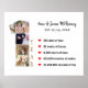 Fira din första bröllopsdag med denna vackert designade affisch! Med roliga mått som 365 dagar av kärlek, 52 veckor av kyssar, 8 760 timmar av kramar, 525 600 minuter av leenden och över 31 miljoner sekunder av kul, fångar denna kreativa affisch några kärleksfulla stunder från det första året tillsammans för ett nygift par. Denna väggdekor är perfekt för att visa upp speciella minnen och fira ett pars 1-årsdag som man och hustru. Alla ord är helt anpassningsbara och fotokollaget har 5 platser för era speciella foton.