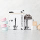 Elegant musik temade mönster med elgitarrer och söta små hjärtan. Färg av denna coola: vit, svart och grått. Text att anpassa.