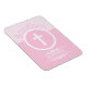 Oavsett om det är ett flicka eller ett barn är den här rosa Baptismgåvan, souvenir, gåva och party mycket viktig för ge för den baptiserade flickan. Kor i mittcirkeln anger innebörden av religiösan tillfälle. Lägg till flicka namn, plats och datum för baptism för en verkligt personlig Baptism-grattisar!