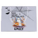 Få redo att lägga till ett sött och roligt streck till Halloween stil. Vår presentväska har söt spöken, roliga pumpor, läskiga spindlar och skrämmande fladdermus som lägger till spokusviber till dina hallopolprodukter. Perfekt till alla som kärlek Halloween! Denna unika presentsäck, med anpassade namn i fet modern stil, är perfekt för gåvor eller som en vacker säck från Bus eller godis. Ta dig ur vår söta halloween-presentpåse och sprid några skämtdukar. BOOOOOOO:-)