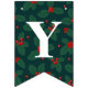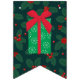 Det här anpassadet svansar "God jul!" julfestens buntning har en mörk grönt bakgrund med grön och röd holly och bär mönster på den med vita bokstäver som du kan anpassa hur du vill. Det finns också en inlindad grönt och vit gåva med rött bog mellan de två orden. Använda den blå redigeringsdesignen om du vill ange verktygen för att ändra teckensnitt, teckensnitt, färger osv.