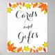 Helt anpassade under hösten fick tecknet "Kort och gåvor" - underbar för att dekorera ditt fallbröllop, möhippa eller andra tillfälle. Du kan ändra den här mallens text, färg, storlek och orientering. Om du har några frågor eller vill ha matchande artiklar, tveka inte att kontakta mig.