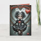 Valentines day med full anpassade text inuti och ut, för att göra det till din egen. Cute-flicka med pulvervikt kort, färg röd och svart, med en blandning av konst stilar gothic, victorian, steampunk, anime, chibi, ai genererad bild, ett unikt kort för ditt speciella valentin