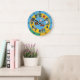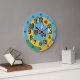 En färgfull och bildande väggklocka designade för barn eller klassrum. Innehåller stora, lättlästa tal, minnemarkeringar och bra bilder för djur och objekt som kan ersättas med egna foton. Perfekt för att hjälpa barn att lära sig att tala i tid på ett roligt och engagerande sätt. Gör en underbar personlig-gåva eller verktyg till hem eller skola.