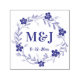 Personlig förkortelse för nygifta med bröllopsdatum förtryckt stämpel. Den är dekorerad med en rund krans gjord av vackra blommor och bladverk. Den centrala delen upptas av stora initialbokstäver som är sammanbundna med ett et-tecken. Anpassat bröllopsdatum skrivs ut med mindre typsnitt under monogrammen. Vacker stämpel som hjälper dig att fira din union och förhöja era bröllopsinbjudningar, presenter och andra relaterade föremål.