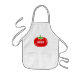 Anpassade namn barn som lagar apron med röd tomatikon. Vegetabilisk vektordesign. Hälsosam matlagning och bakande aproner för barn. Gnugga små BBQ-aproner i vit gult och khaki beige. Cute-favoritgåva för Födelsedagsfest. Även trevligt för konst och hantverk, målning eller teckning. Lägg till namn av underordnad. Unisex, lämplig för liten kock eller flicka.