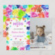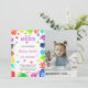 Lägg till en konstnärlig beröring till ditt barns födelsedag med den här vackra färginbjudan som innehåller deras foto! De mjuka, pastellfärgerna i kombination med ett personlig-foto gör den här perfekten för födelsedagsfester, kreativ firande eller konstnärliga händelser. Helt redigerbart för att anpassa ditt meddelande, namn och ålder.