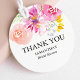 Dessa anpassade presentkort har unika akvarellblommor i flerfärgade nyanser av rosa, orange, persika och lavendel i ett runt format. Använd mallfälten för att lägga till dina personliga detaljer. Ett elegant val för vår- och sommarbröllop. För att se fler blommiga bröllopsdusch- och tacksamtsetiketter för bröllop, besök www.zazzle.com/dotellabelle