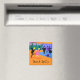 Anpassadet Retro Urban Rooftop Party Magnet är berusat i sin detaljrikedom. Tecknaden har den typ av viltsofistikerat cocktail party som normalt bara visas i filmer från 1960-talet. Det finns mycket som partierna kan ta in. Gästerna njuter av synen och ambitionen i en lägenhet. Belysningen sätter stämningen och vi kan se de mörka silhuetterna av ett attraktivt par som dansar cha-cha. På golv finns det en lila, bärbar, rekordspelare vid dans pars fötter. Flera album har spridits i närheten. Även med den nedtonade belysningen som gör att praktiskt taget allt i rummet visas i skuggor av lila, blått och svart kan vi säga att alla är klädda till ninerna. Bakom dansen, inomhusparet, finns en gentleman i ett svart kostym som håller ett martinistiskt glas. Han pratar med en skönhet i mörken som står nära en av golv till takglasväggar. En lampa kastar en romantisk glöd på scenen. Den enda sak som saknas är lampskugga. ... Var är skuggan? Det är på huvudet på en tipsy-man som har tagit party utanför orangens tak. Han är helt klart har någon bra dansar och han är inte rädd för att visa dem för världen! Hans följeslagare är en blond kvinna i en ljus rosa klänning. Hennes rygg är öppen när hon kastar tillbaka martini i ett ohämmat mode. Utanför party finns det en andningsande tealskylin, komplett med skyscraper och lila himlar. Om det är så den andra halvan lever, registrera mig! Anpassa den här magneten för en vänlig gåva.