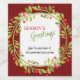 Unikt, klassiskt, trendigt, vackert och dekorativt firmanamn på etikett för vinflaska till högtider. Glad helg-hälsning och utrymme att anpassa eller personifiera med ett meddelande efter eget val på baksidan av kortet. Inramad av vinröda bär och mörkgrönt lövkrans på en klassisk skogsgrön bakgrund.