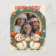 Underbart vykort med ett nytt vintertema med snögubbar. Det finns ett cirkulärt ram som du kan fylla med ett eget foto och en egen text! Detta vykort är underbart för att fira det nya året!