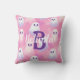Denna anpassade rosa Halloween kastkudde med ett monogram har ett söta spöken mönster.. Lägg till ett namn och initial för att göra det till ditt eget. Den mjuka färgpaletten lägger till en tjejaktig twist till den spökliga säsongen, perfekt för ett barns rum, som Halloween-festdekoration, spökiga barnkammardetaljer eller något mysigt hösthörn.