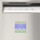 En söt Spara datumkylmagneten så att du kan anpassa dig, med en mönster av rosa, blått och gult, från en vattenfärgsmålning av Judy Adamson
